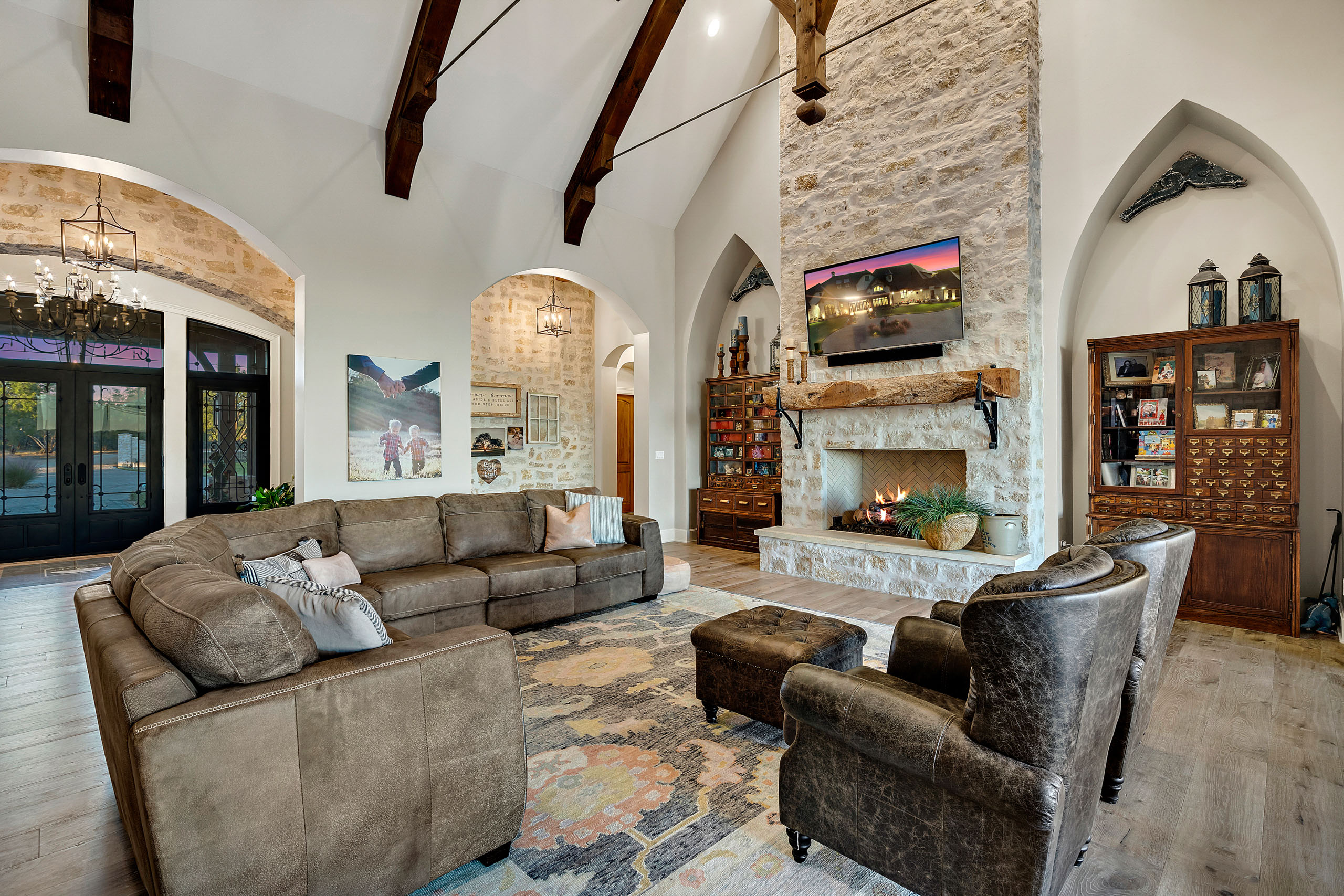 Inspired by timeless European elegance, this Country French Tudor home brings old-world charm to the Texas coast. Steep rooflines, rich textures, and artisan details create a sense of storybook romance, while modern amenities ensure comfort and livability for today’s lifestyle. Set in the heart of Corpus Christi, the residence is a rare blend of architectural tradition and coastal sophistication, offering a home as distinctive as its surroundings.